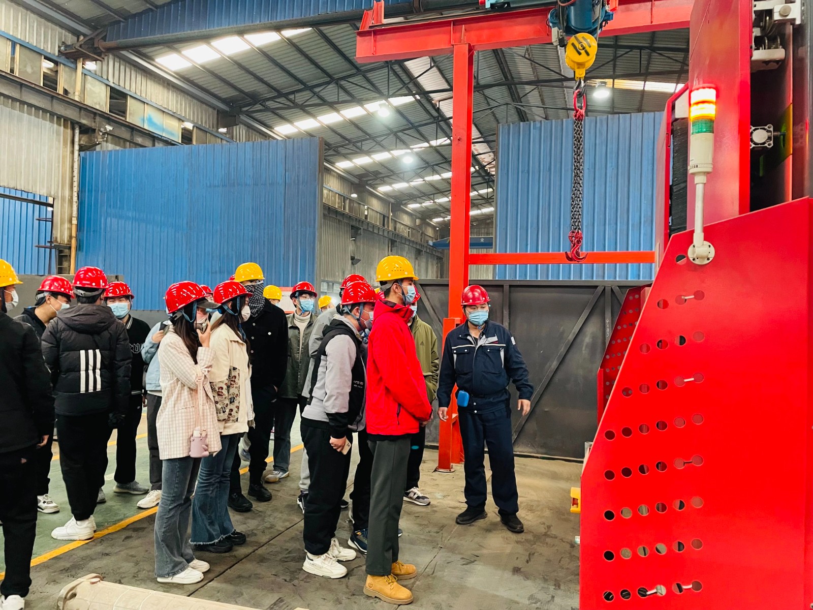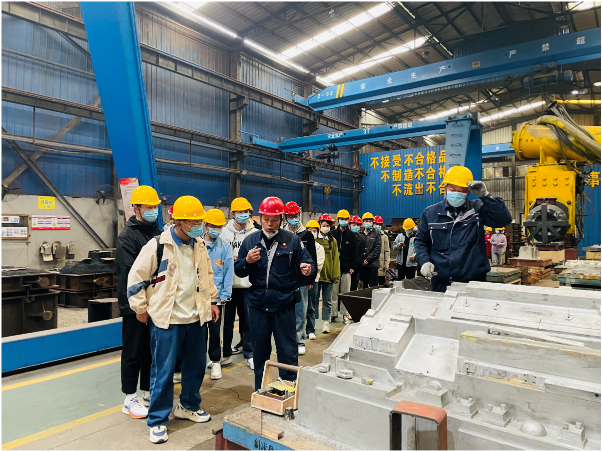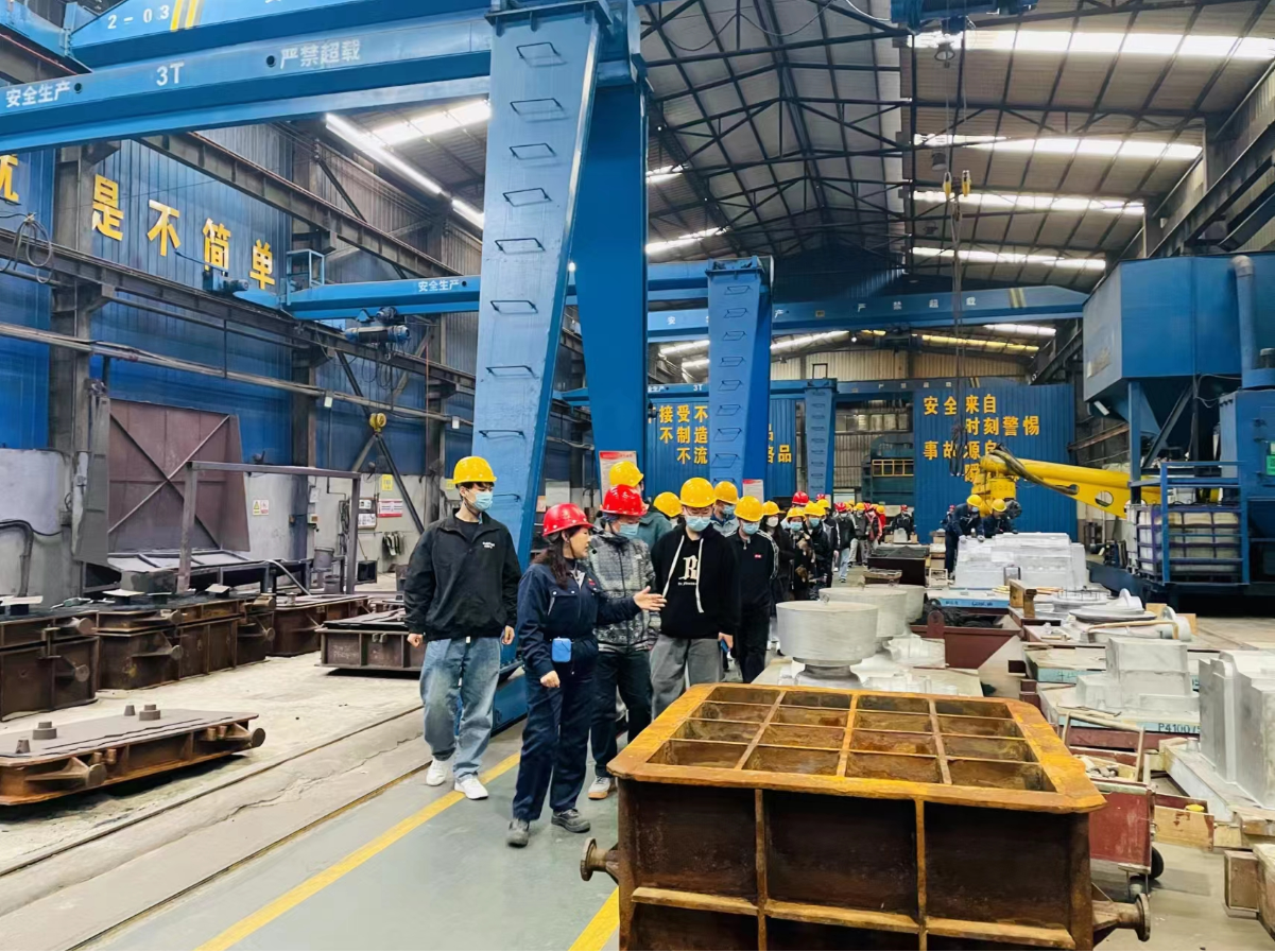 首先,公司生產(chǎn)總監(jiān)閆濤向?qū)W生們介紹了金太陽鑄業(yè)的企業(yè)概況、鑄造業(yè)在gao duan制造領(lǐng)域中的重要性及參觀an quan注意事項(xiàng)等,隨后學(xué)生們有序進(jìn)入車間,參觀了造型、熔煉、澆鑄、機(jī)器人清理打磨等生產(chǎn)設(shè)備及產(chǎn)品展廳,對(duì)整個(gè)鑄造生產(chǎn)流程有了直觀的感受。參觀過程中,車間技術(shù)人員認(rèn)真對(duì)鑄造生產(chǎn)工藝及設(shè)備進(jìn)行了分析和講解,并耐心解答了學(xué)生提出的問題,讓大家對(duì)鑄造工藝流程有了更深的認(rèn)識(shí)。
